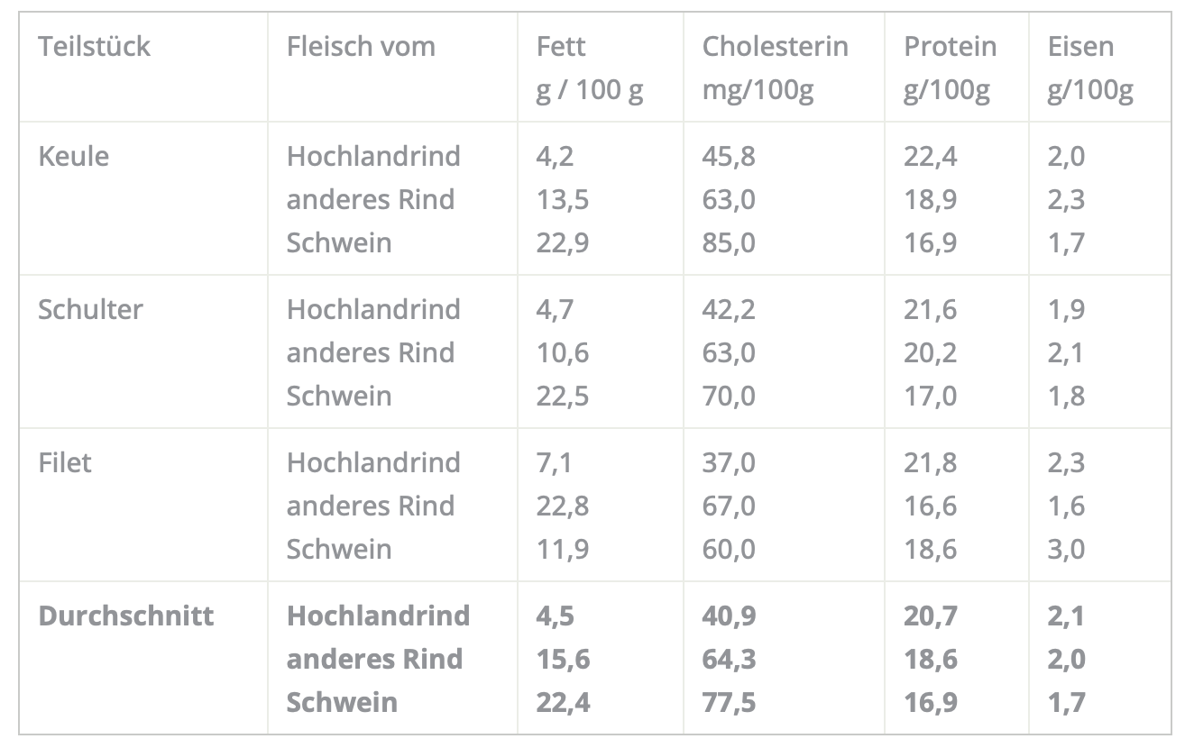 Aufgrund des natürlicheren und langsameren Wachstums des schottischen Hochlandrindes entwickelt sich ein Fleisch von erstklassiger Qualität, Saftigkeit und besonderem Aroma.